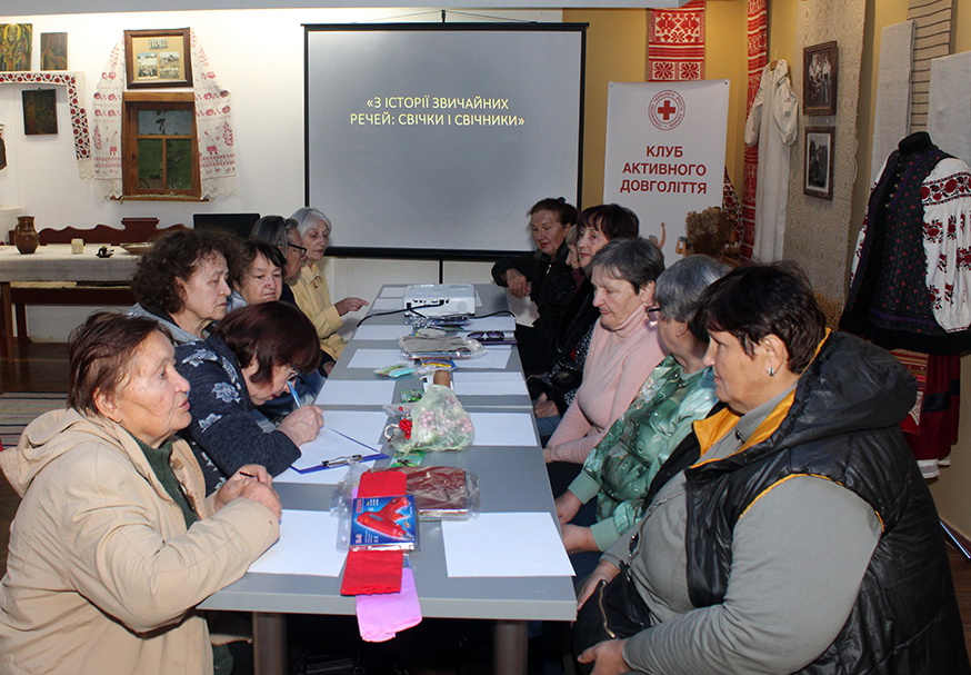 Сумський  обласний краєзнавчий музей продовжує співпрацю з Сумською обласною організацією Товариства Червоного Хреста України. Днями співробітники ТЧХУ та члени Клубу активного довголіття долучилися до інтерактивного заняття «З історії звичайних речей: свічки і свічники».