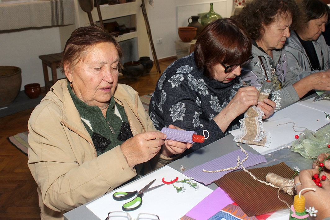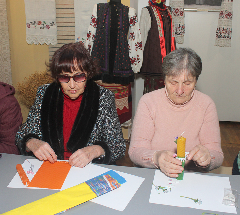 Про історію виникнення, особливості виготовлення, різноманітність видів свічників та їх застосування розповіла науковий співробітник музею Олена Опанасюк. Учасники заходу оглянули старовинні та сучасні свічники, що зберігаються у зібранні музею, і взяли участь у майстер-класі з виготовлення і декорування свічок з вощини.